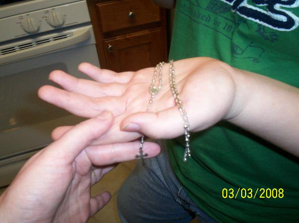 She helped me put my rosary on, and I went to